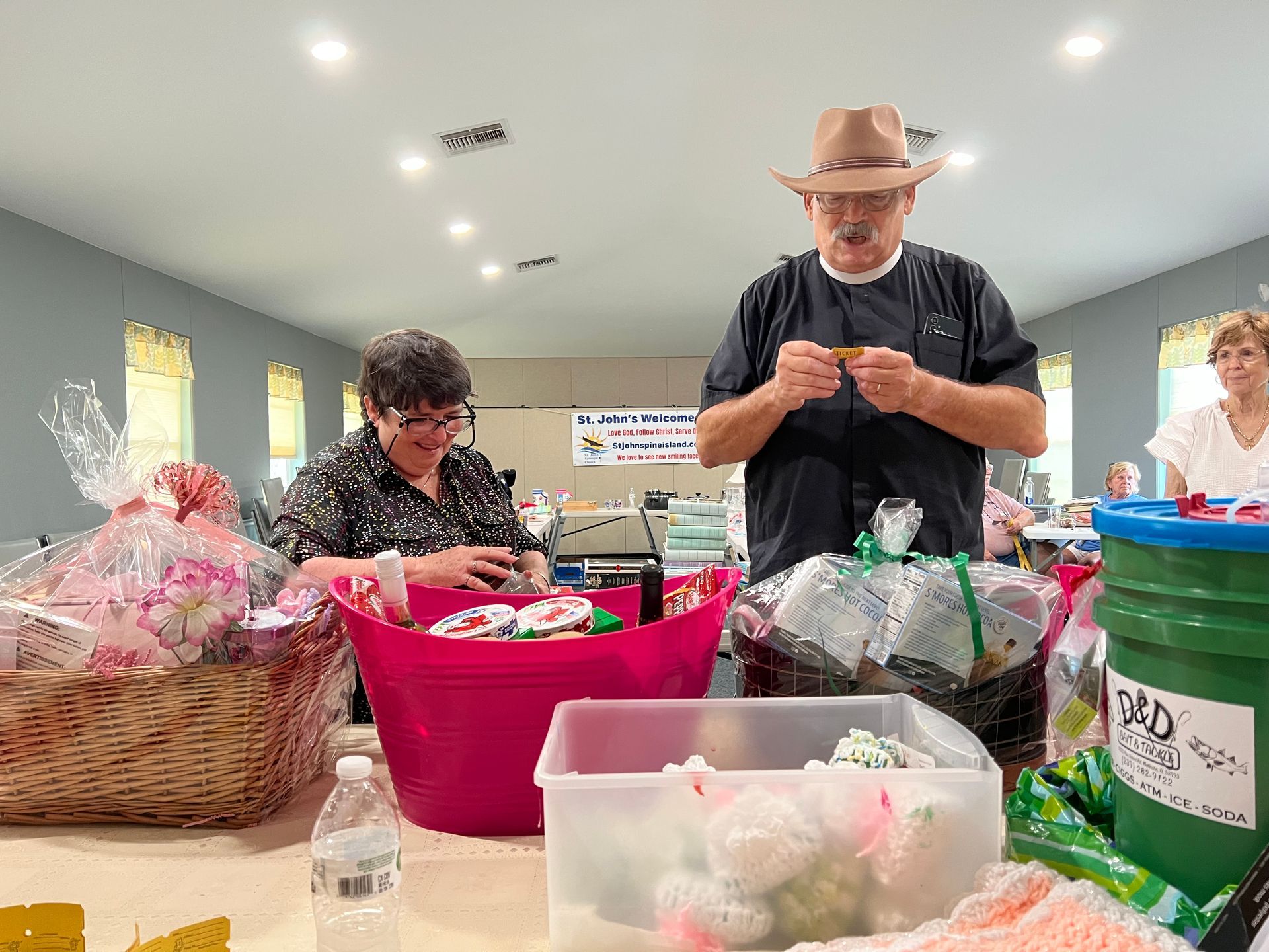 Raffle items were donated by the Beacon of Hope, Calusa Land Trust, the Hookers, and St. John’s church including Fr. Bill and Sue Gilmore, Don and Lee Jay, Sonny Koutsoutis, Mary Ragains and Janette Sherley just to name a few.